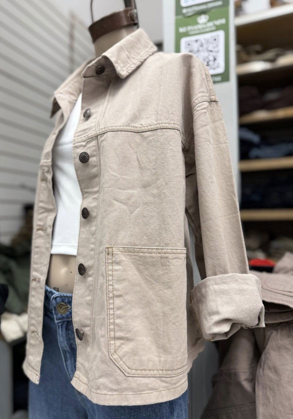 El camisaco Tina es de jeans, liviano, cómodo y súper canchero. Tiene un corte amplio que lo hace ideal para usar abierto o cerrado, combinándolo con remeras, tops o incluso un buzo fino.