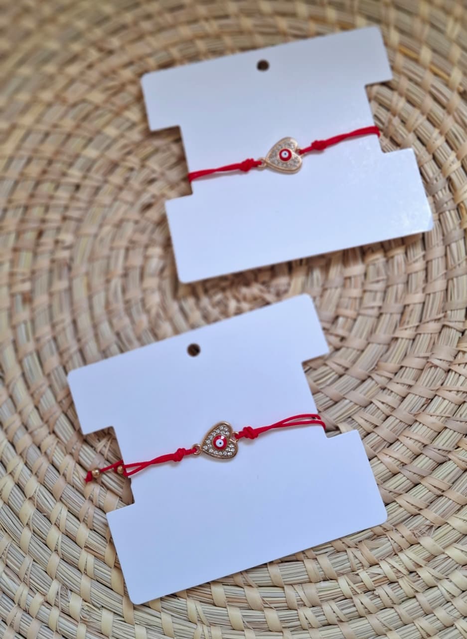 Pulsera roja con ojo en forma de corazon. Amuleto con buenas vibras y de proteccion.
