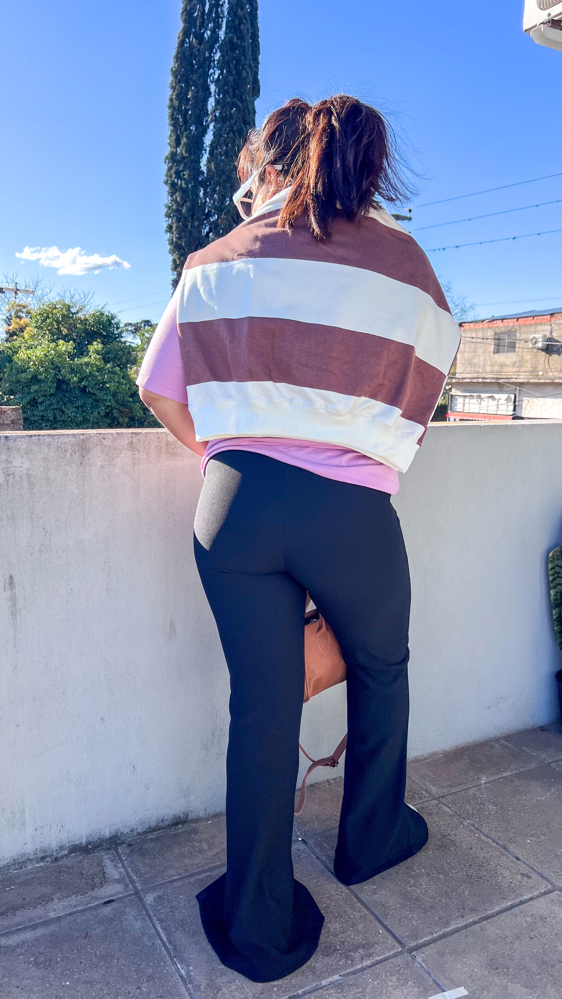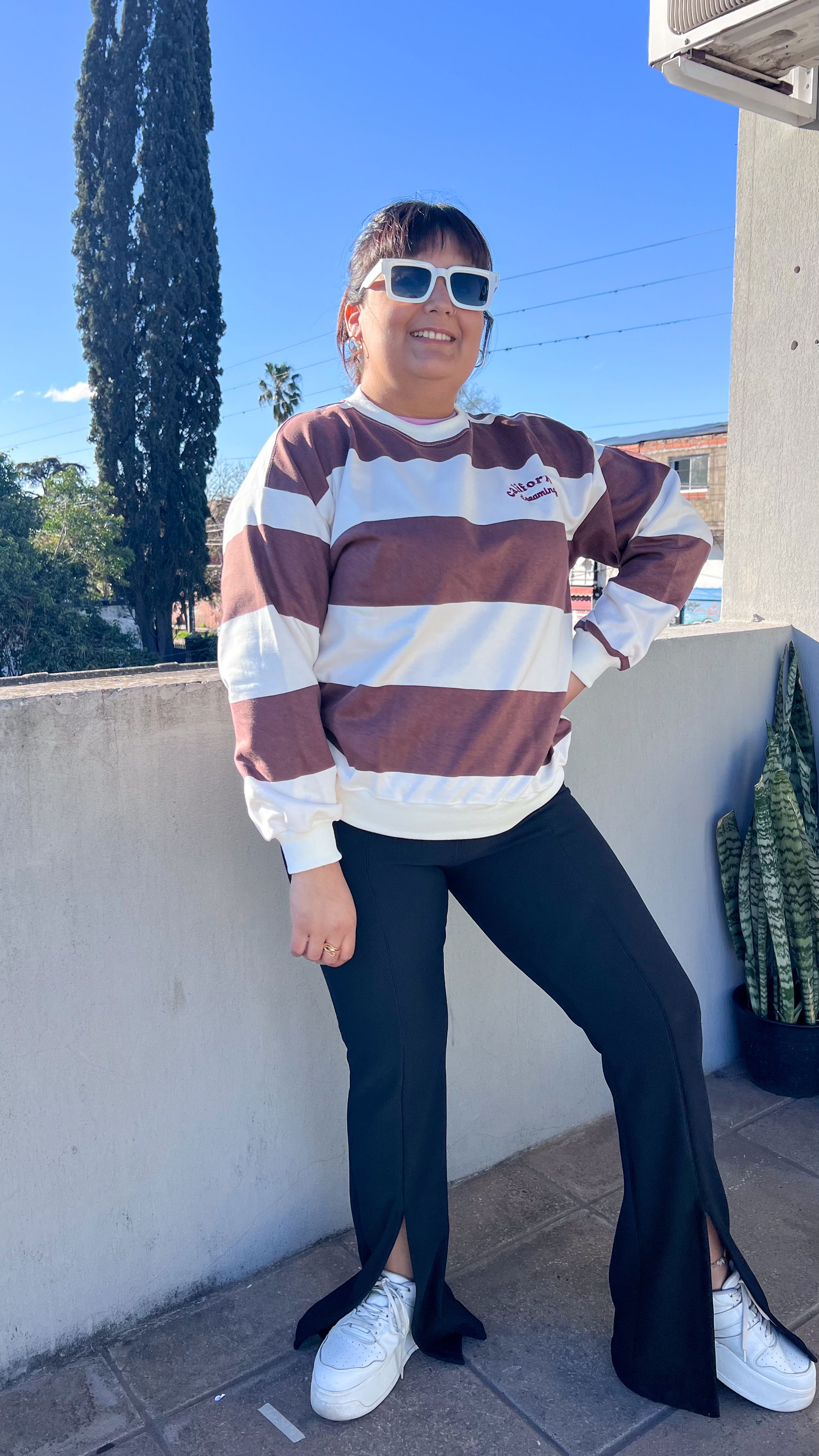 Buzo rustico rayado color chocolate talle unico (abarca hasta un L)