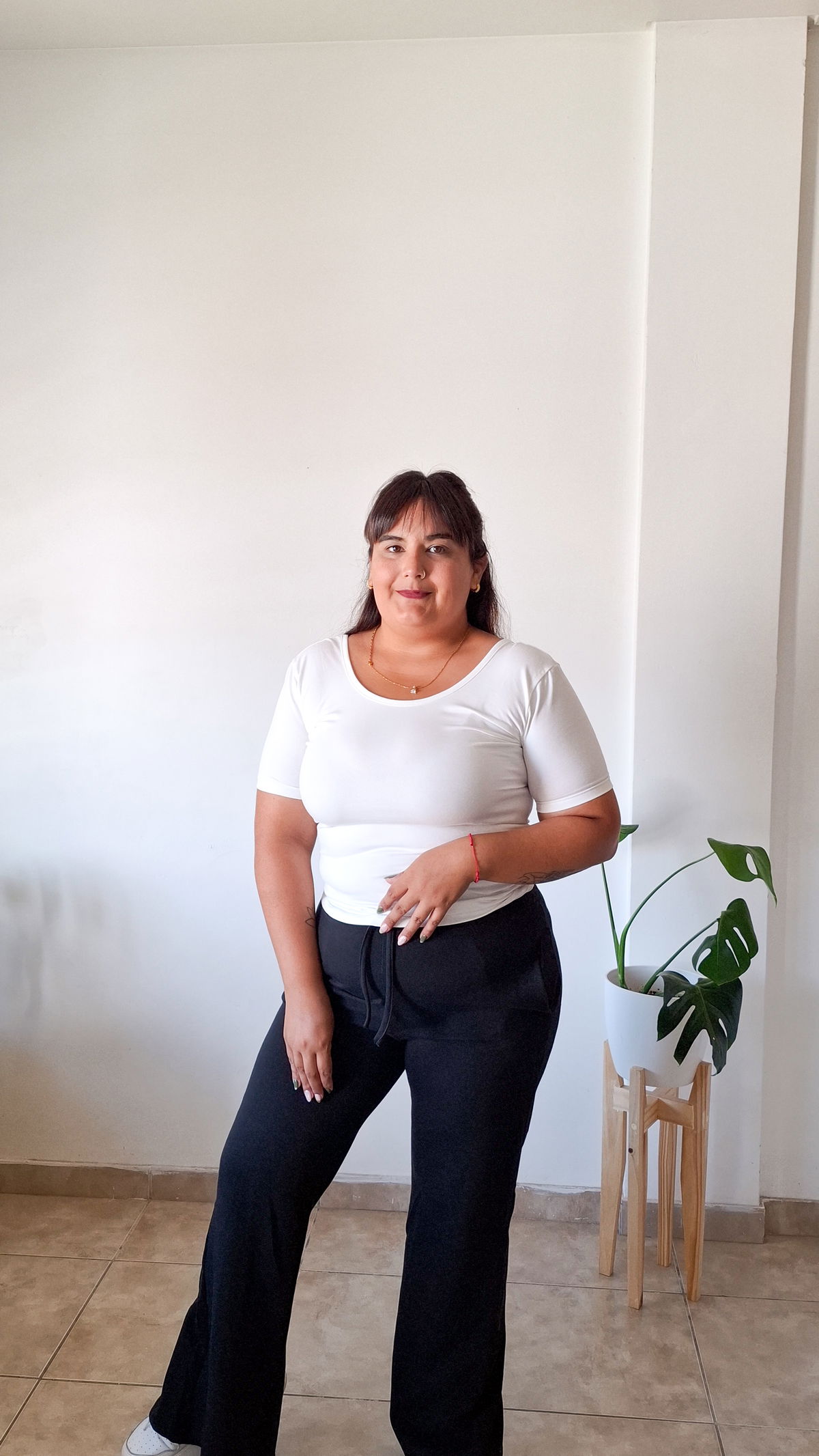 Remera Mawi básica confeccionada en algodón con lycra, una tela increíble al tacto, suave y con elasticidad que se adapta muy bien al cuerpo.