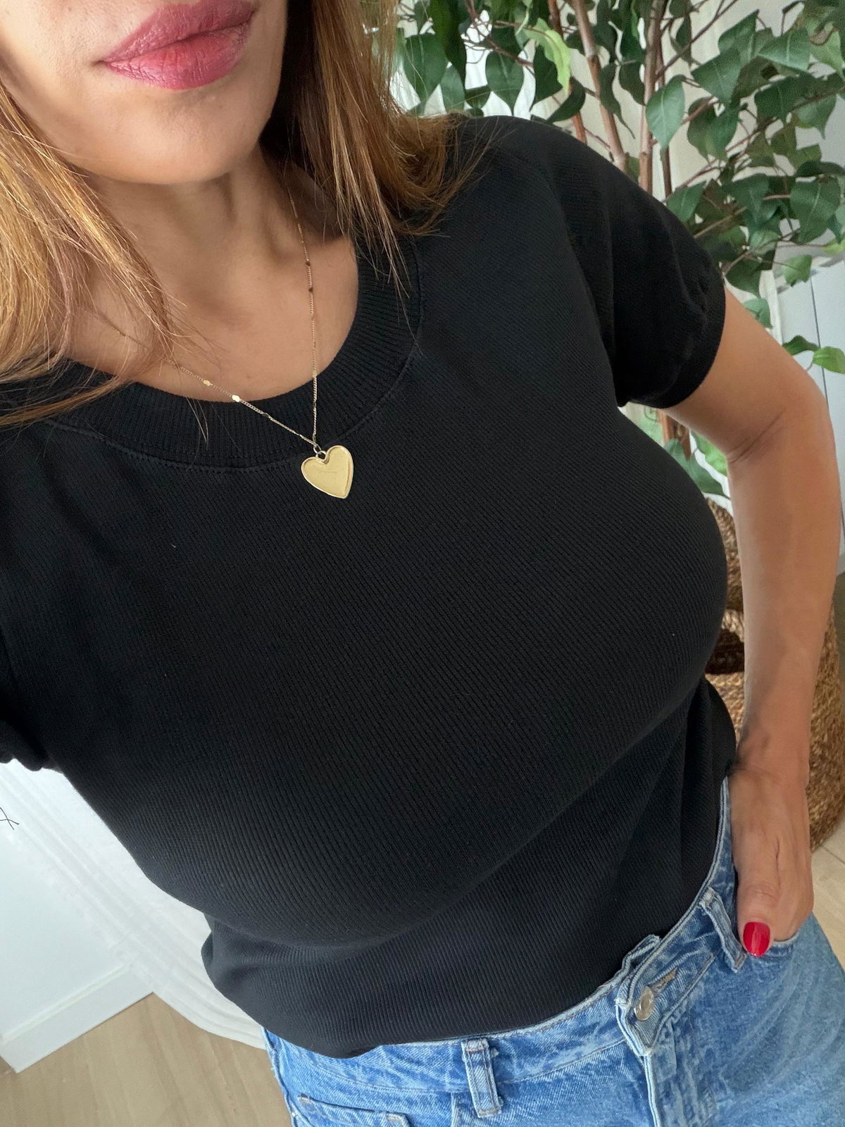 Tiene cuello redondo y mangas cortas con puño, un detalle sutil que le da mejor terminación y un toque más prolijo a este básico.