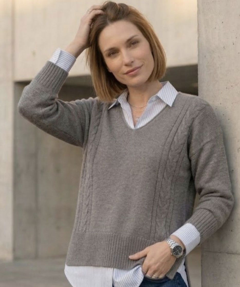 Su diseño incluye un delicado trenzado en los laterales que suma textura y lo diferencia de un básico común. Es suave, abrigado y fácil de combinar con todo.